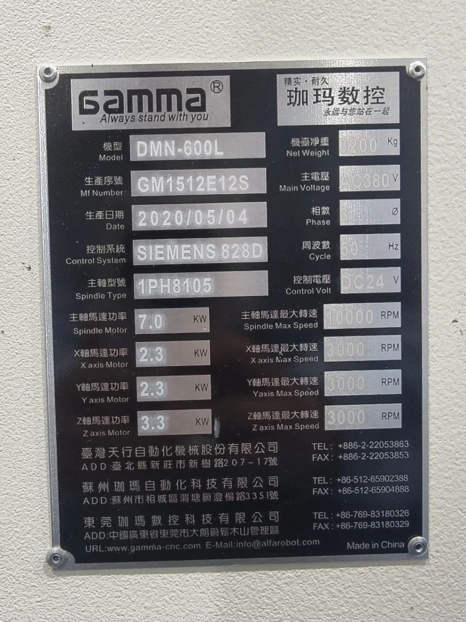 现货出售3台珈玛DMN-600L钻攻中心 西门子828D系统 三轴行程:600×500×380 工作台尺寸:750×400 主轴转速20000rpm BT30刀柄16把刀 2020年出厂