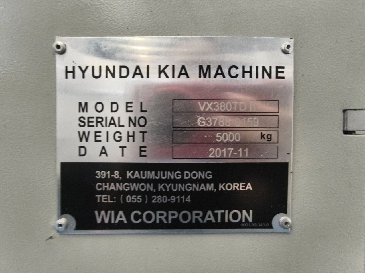 韩国威亚VX-380TDi双工位钻攻中心 三轴行程520*360*350 主轴转速12000rpm 三菱M70系统 BT30刀柄14把刀 2017年出厂